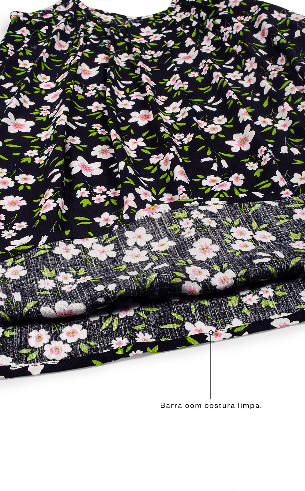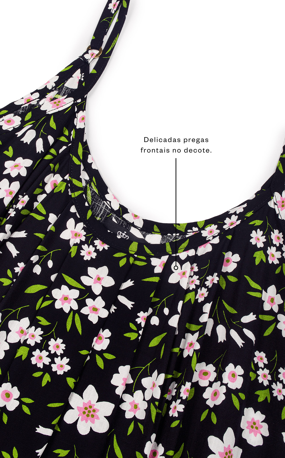 • Delicadas pregas frontais no decote.