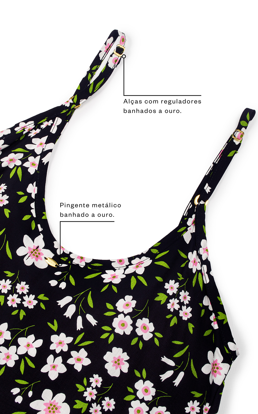 • Alças com reguladores banhados a ouro.