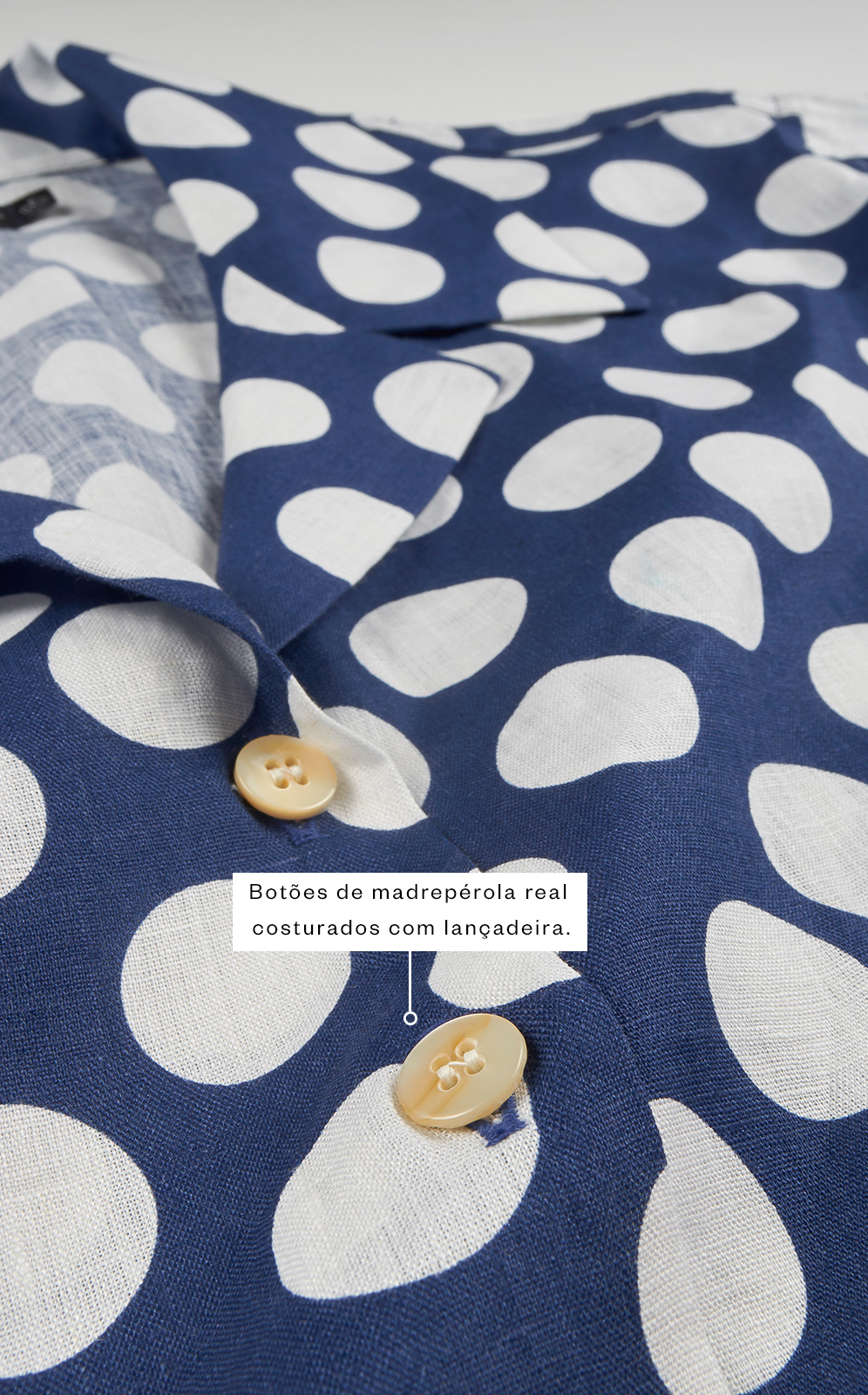 O tecido quintessencial do verão: totalmente natural, o fio de linho é um tecido durável e forte, porém leve e respirável. Por ser uma fibra com trama mais grossa, o tecido é menos propenso a se agarrar na pele, descansando sobre ela com sua textura refrescante e ondulada. O amassado é belo — esqueça o ferro de passar por alguns dias: estes conjuntos ficam melhores quanto mais forem utilizados e ganham beleza ao passar do tempo.