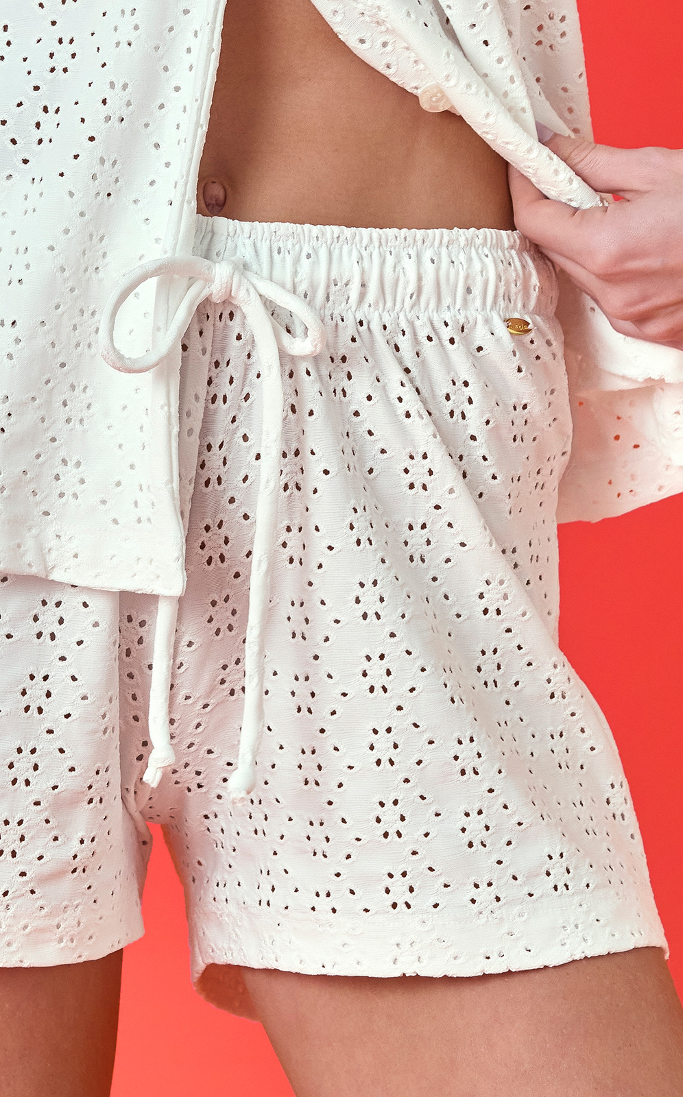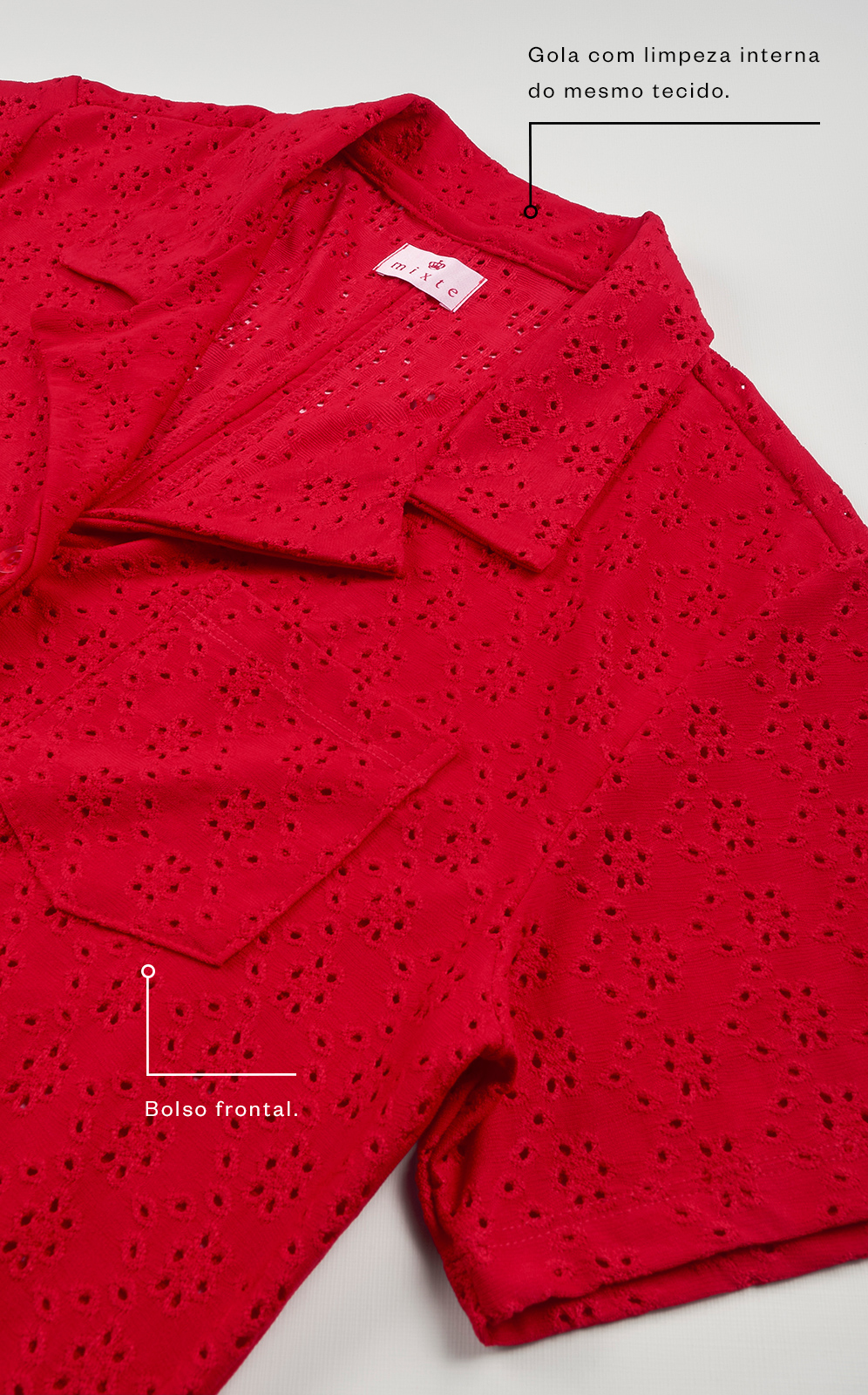 Dotado de um estilo de origem milenar, este tecido é destaque internacional em peças de verão. Com um elegante padrão de costuras perfuradas combinadas com bordados, o visual arejado passa a sensação de leveza e garante conforto devido a maleabilidade proporcionada pelo elastano.