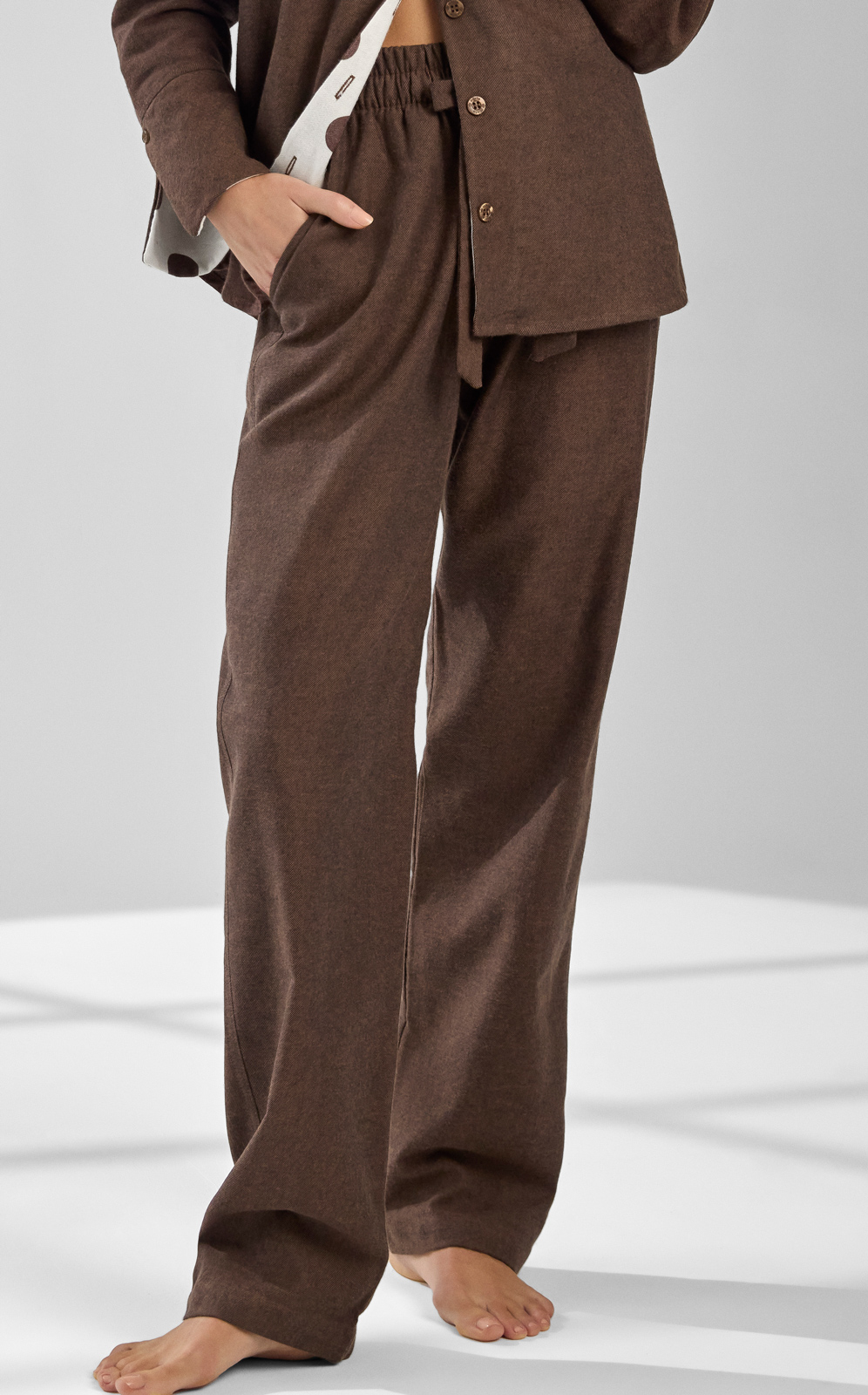 Com um design feito exclusivamente para nossa marca, a luxuosa Flanela de Algodão Renaux View proporciona um toque suave, aveludado e único em nossos conjuntos. Confeccionado com fibras naturais nobres, é o tecido quintessencial do Inverno: aconchegante, quentinho e com elegância de sobra.