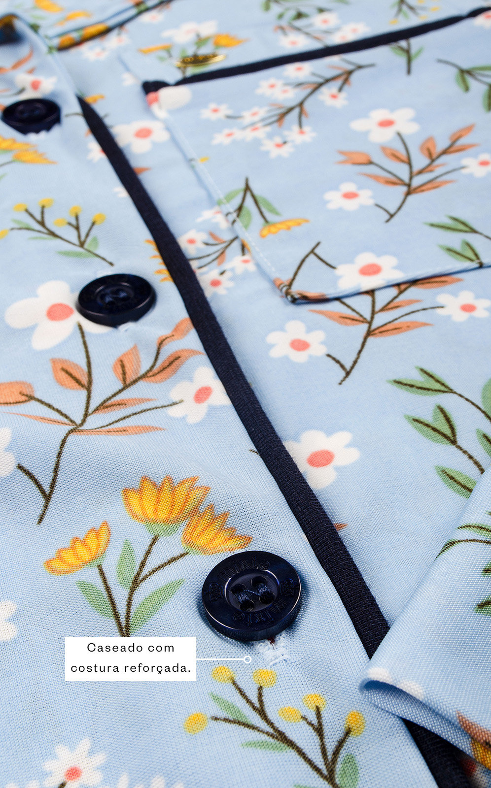 • Botões personalizados costurados com lançadeira. Fixos para sempre!